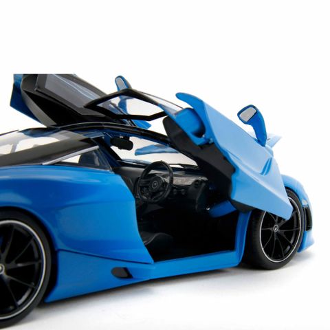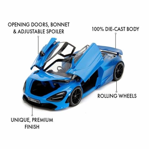 Đồ Chơi Xe Mô Hình JADA TOYS Pink Slips McLaren 720S 1:24 nổi bật với màu xanh dương bắt mắt, kết hợp với các chi tiết đen bóng, tạo nên một vẻ ngoài hiện đại và cuốn hút. Chiếc xe không chỉ thu hút ánh nhìn mà còn thể hiện phong cách độc đáo và cá tính của những người yêu thích xe hơi.