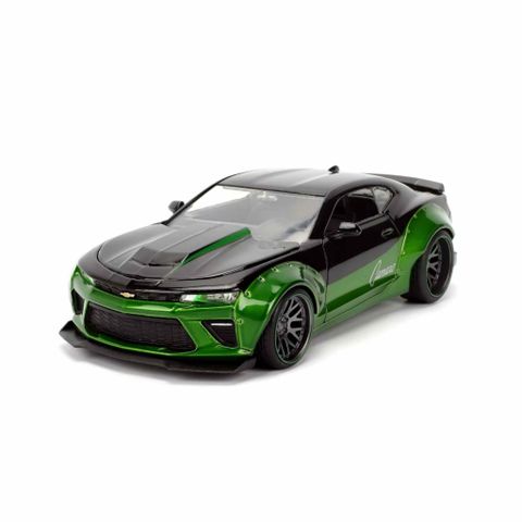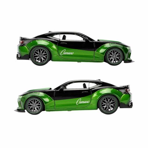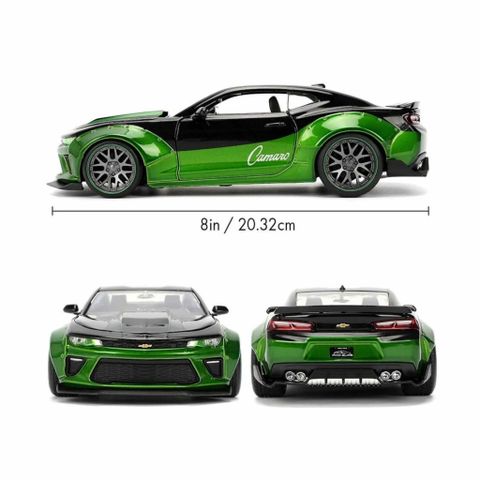 Đồ Chơi Xe Mô Hình JADA TOYS Pink Slips 2016 Chevrolet Camaro SS WB 1:24 thu hút ánh nhìn với sự kết hợp màu xanh lá và đen đầy nổi bật. Thiết kế độc đáo cùng các đường nét tinh tế tạo nên một diện mạo ấn tượng và đầy cá tính. Chiếc xe được hoàn thiện tỉ mỉ với nhiều chi tiết đẹp mắt, từ mui xe đến bánh xe, thể hiện sự chăm chút trong từng góc cạnh. Đây là một lựa chọn tuyệt vời cho những tín đồ yêu thích xe hơi, mang lại một tác phẩm nghệ thuật độc đáo cho bộ sưu tập của bạn.