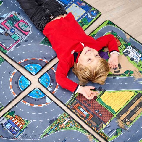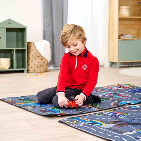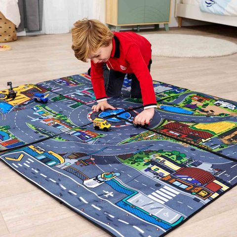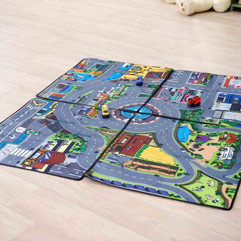 Thảm chơi này khuyến khích trẻ em phát triển trí tưởng tượng và khả năng sáng tạo thông qua việc tạo ra các câu chuyện và kịch bản khác nhau. Nó giúp trẻ làm quen với các khái niệm về không gian, định hướng, và cấu trúc của một thành phố. Việc di chuyển các xe đồ chơi trên thảm cũng giúp cải thiện kỹ năng vận động tinh và phối hợp tay mắt của trẻ.
