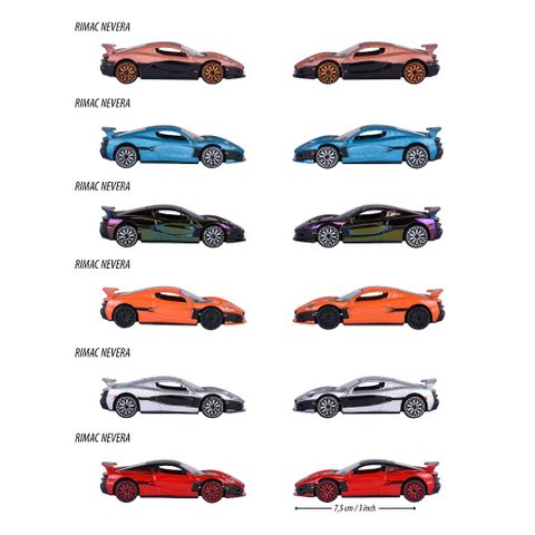MAJORETTE RIMAC Nevera Edition là bộ sưu tập bao gồm 6 màu xe khác nhau của mẫu xe RIMAC Nevera.
