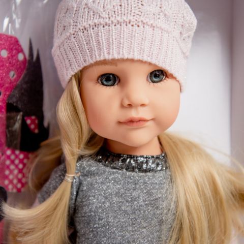 Đồ Chơi Búp Bê GOTZ Hannah Love Party Glamour 50cm 1759085 sở hữu vẻ ngoài dễ thương với mái tóc vàng dài, trang phục mùa đông thời thượng gồm váy len xám, áo tay hồng và đôi boots ấm áp. Bé đi kèm nhiều phụ kiện chụp hình như kính, nơ, ria mép, mặt nạ… giúp trẻ dễ dàng thay đổi phong cách và sáng tạo những kiểu chơi mới.