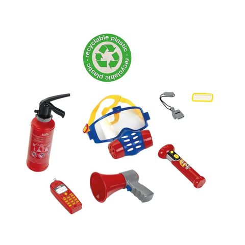 Đồ Chơi Dụng Cụ Lính Cứu Hỏa THEO KLEIN Fireman Set 8950 với áo giáp bảo vệ, vòi nước giả và thiết bị phát tín hiệu, sản phẩm không chỉ đem lại giây phút giải trí mà còn phát huy vai trò giáo dục. Trẻ em sẽ học cách chăm sóc cộng đồng và góp phần quan tâm đến việc phòng cháy chữa cháy một cách trách nhiệm.