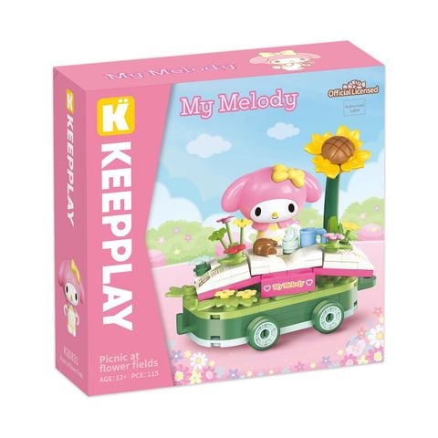 Đồ Chơi Lắp Ráp KEEPPLEY Sanrio Picnic At Flower Fields mang chủ đề"Picnic At Flower Fields" (Dã Ngoại Tại Cánh Đồng Hoa), tạo ra một bối cảnh tươi sáng và đầy màu sắc với các hoạt động dã ngoại và khám phá thiên nhiên.