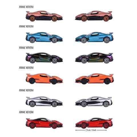 MAJORETTE RIMAC Nevera Edition là bộ sưu tập bao gồm 6 màu xe khác nhau của mẫu xe RIMAC Nevera.
